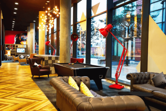 交誼廳、自習室、健身房、洗衣間、停車場(自行車)、24小時保全、免費WiFi、野餐區、咖啡廳、飲料/零食機、每天提供免費早餐